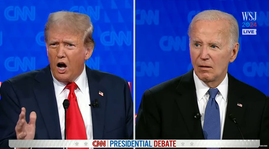 Wall Street Journal, “Full Debate: Biden and Trump in the First 2024 Presidential Debate,” streamed live on YouTube on June 27, 2024.